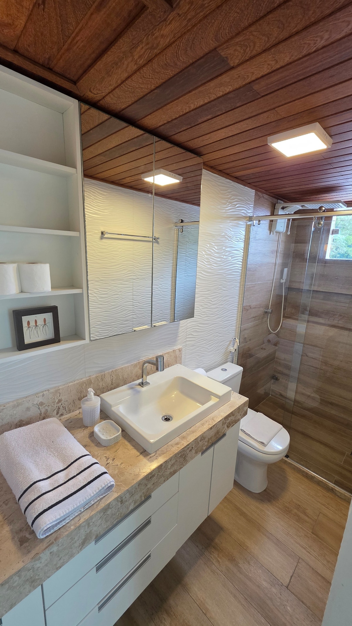 Détendez-vous en famille dans ce logement au calme. Dormez avec le bruit de la mer. Avec exactement 12 km de plage à sa droite pratiquement déserte et à sa gauche 2,5 km la rencontre de la rivière avec la mer et aussi une merveilleuse cabane de plage. Petite copropriété avec barbecue maison, portail électronique, Wi-Fi, parking, tous les ustensiles ménagers, réfrigérateur, cuisinière, congélateur, espace vert et plus encore. Face à la mer, situé à Praia de Lençóis Una -ba.