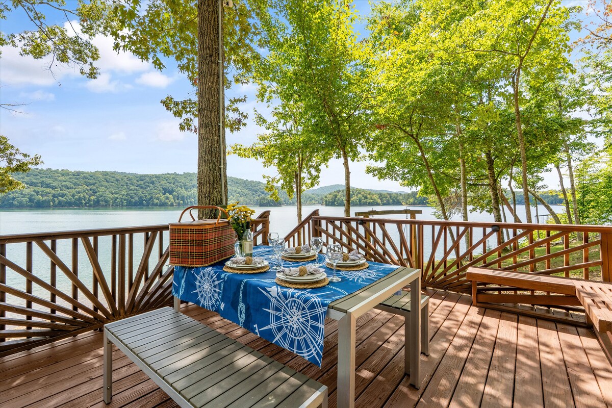 Welcome to your perfect lake house. After a full day out on Norris Lake, tubing, swimming, and chasing sunshine, the kids relax on the couch, still buzzing from the day, while the grandparents settle in on the deck. You slip out onto the relaxing chairs as the lake grows quiet, the sun dipping low over the mountains. Wrapped in the stillness of the water and trees, you unwind together beside the glow of the fire pit, a peaceful escape that feels worlds away… yet is right on the lake. No pets!