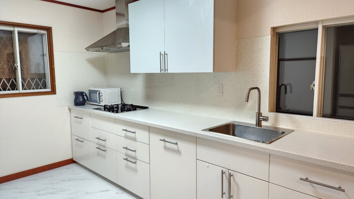 Séjournez dans une maison confortable de l'ère Showa, vieille de 40 ans, dans un quartier résidentiel calme du sud de Toyama. On a l'impression de visiter la maison de campagne de sa tante : simple, chaleureuse et nostalgique. Base idéale pour visiter : à 30 min de la gare de Toyama, à 15 min de Yatsuo (festival d'Owara), à 40 min de Tateyama, à 1 h de Kanazawa ou Himi. Les sources chaudes sont à seulement 10 minutes. Cuisine spacieuse pour cuisiner soi-même. À proximité, vous trouverez des sushis, des izakayas, des restaurants familiaux, des supérettes et un supermarché avec des fruits de mer frais.