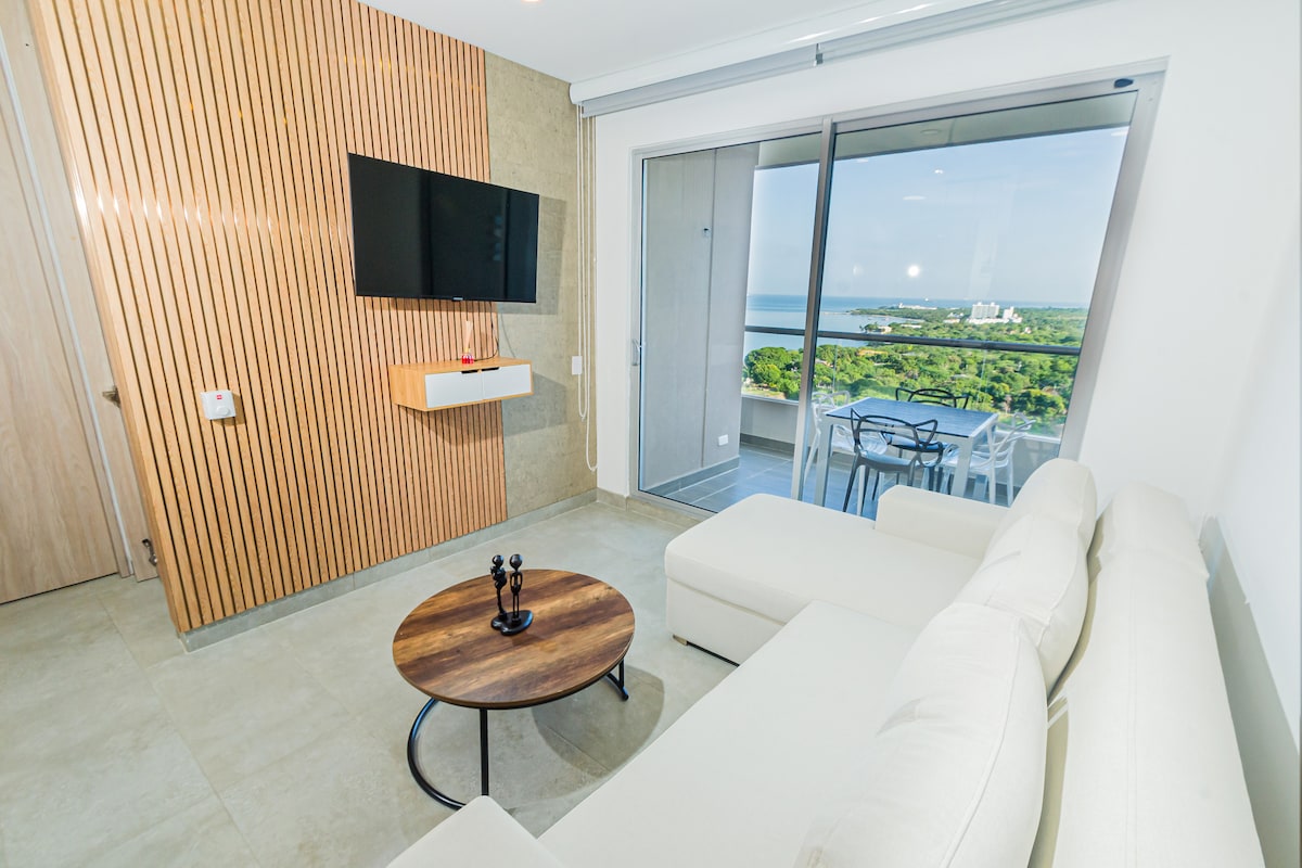 Profitez d'un tout nouvel appartement en bord de mer avec accès à la plage et à la piscine, à seulement 5 minutes de l'aéroport. Parfaite pour les couples ou les voyageurs en solo, elle dispose d'un lit double confortable et d'un lit gigogne supplémentaire. L'appartement peut accueillir jusqu'à 3 personnes, avec la possibilité d'un 4ème invité sur un matelas pneumatique de haute qualité. Profitez du club de plage avec un restaurant de cuisine locale, des jacuzzis et une atmosphère parfaite pour se détendre. Votre escapade idéale à Santa Marta ! Nous sommes situés juste à côté du Decameron Hot