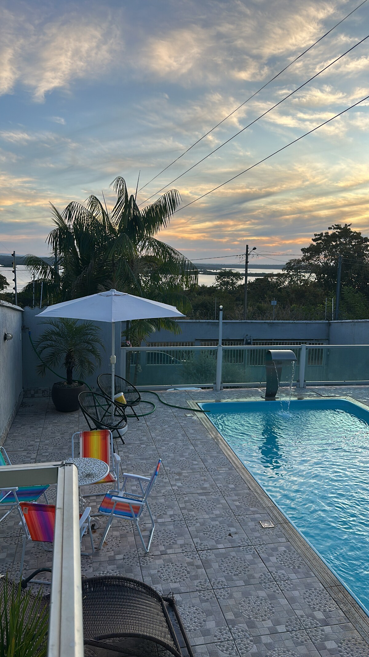Bienvenue au Paradis sur les Rives du Lac Serra da Mesa! Hébergement: 4 chambres climatisées, dont 1 chalet avec lit double et 3 chambres avec 2 lits simples chacune, dont 3 suites. Salle de bain confortable avec eau chaude. (nous avons des matelas supplémentaires). Cuisine complète: Équipée d'une cuisinière, d'un barbecue, de casseroles, d'assiettes et de couverts, d'un micro-ondes, notre cuisine est prête pour vous. Espace loisirs: Petite piscine de 10 000 litres. 2 tables de jeu avec un total de 8 chaises. Internet : WiFi Starlink.