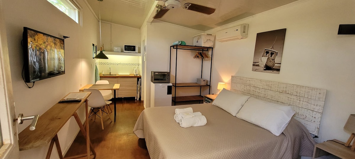 Relájate en esta escapada única y tranquila en este loft privado situado en un terreno amplio a 5 cuadras de Playa Grande. Disponemos de estacionamiento privado para 1 vehículo, piscina climatizada (compartida solo con el anfitrión), televisión, wifi, aire acondicionado, ropa de cama así como artículos de higiene personal y secador de pelo. Además cuenta con cafetera, jarra eléctrica, tostadora, microondas y una heladerita Perfecto para descansar en una estadía relajante en pareja.