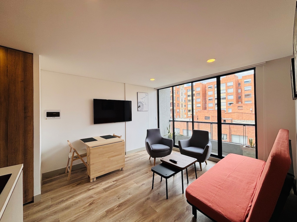 Studio de charme récemment rénové. Cet endroit est stratégiquement situé : à proximité des marchés, des musées, du centre commercial San Martin, de Monserrate, de La Candelaria, de La Plaza del Perseverancia, de la Calle Bonita, du Centre international du parc national (zone financière) et d'innombrables restaurants, bars et activités culturelles qui feront de votre visite de la ville une expérience inoubliable. Le bâtiment dispose d'une salle de sport, d'un espace de coworking, d'une piscine et d'une terrasse avec barbecue au dernier étage avec vue à 360°.