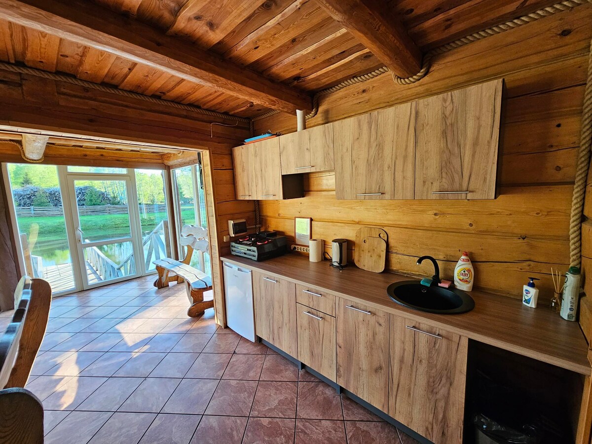 Notre cabane Žvejo namelis est un endroit idéal pour un groupe d'amis, des familles ou des couples appréciant la sérénité de la nature, admirant le mode de vie écologique et désireux de passer du temps en pleine nature. La cabane est une maison en rondins de campagne lituanienne traditionnelle chaleureuse et confortable (studio avec grenier) avec une petite cuisine, une salle de bain/douche, une cheminée et un canapé-lit. Un matelas double et deux matelas simples se trouvent dans le grenier de la maison. La maison dispose d'une terrasse spacieuse reliée à la passerelle menant au lac.