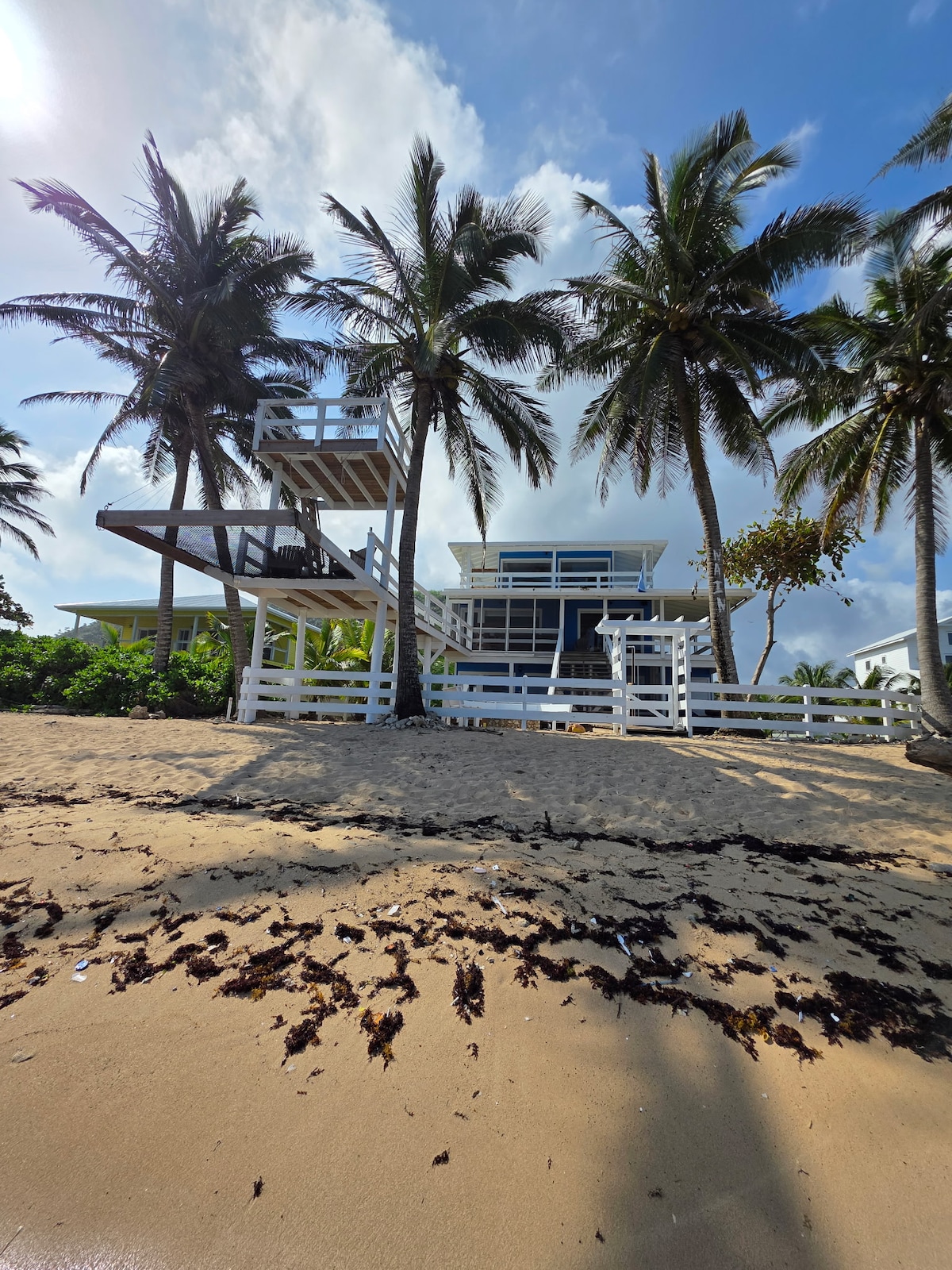 Utila 's Sapphire House est une maison haut de gamme de 2 chambres et 2 salles de bain nouvellement construite située au bord de l'eau sur ce qu'on appelle le « vieux aéroport » au début de TradeWind. Cette élégante maison offre une vue sur la mer depuis les deux chambres et la grande pièce (qui comprend le salon, le coin repas et la cuisine). La terrasse au bord de la mer est un endroit parfait pour s'asseoir dans le calme et profiter du déferlement des vagues des Caraïbes contre le rivage. C'est ce que vous recherchez !