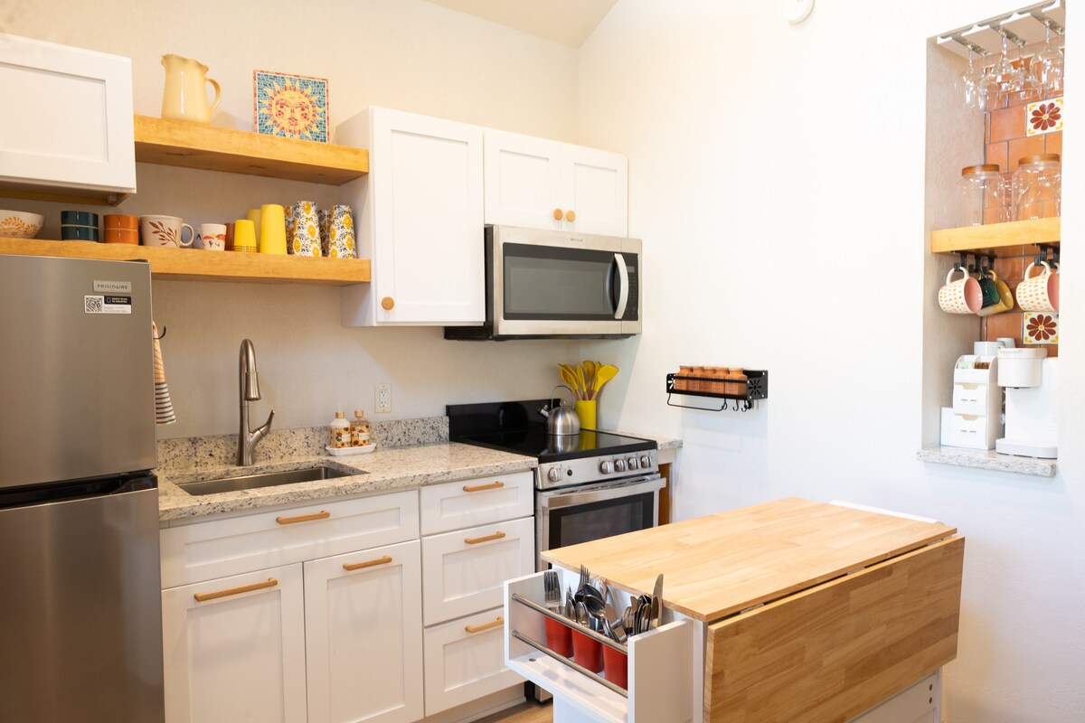 Sunny Day Getaway est une maison d'hôtes conçue pour vous rendre heureux. Ensoleillée, lumineuse, mais privée pour votre séjour. Dotée d'équipements et de finitions de luxe, vous vous sentirez comme chez vous. Il y a une chambre complète et un canapé-lit. La charmante salle de bain est également entièrement approvisionnée. À l'extérieur, vous pourrez vous détendre à l'ombre ou vous promener dans les quartiers historiques qui entourent la maison d'hôtes. Venez fatigué, partez heureux !