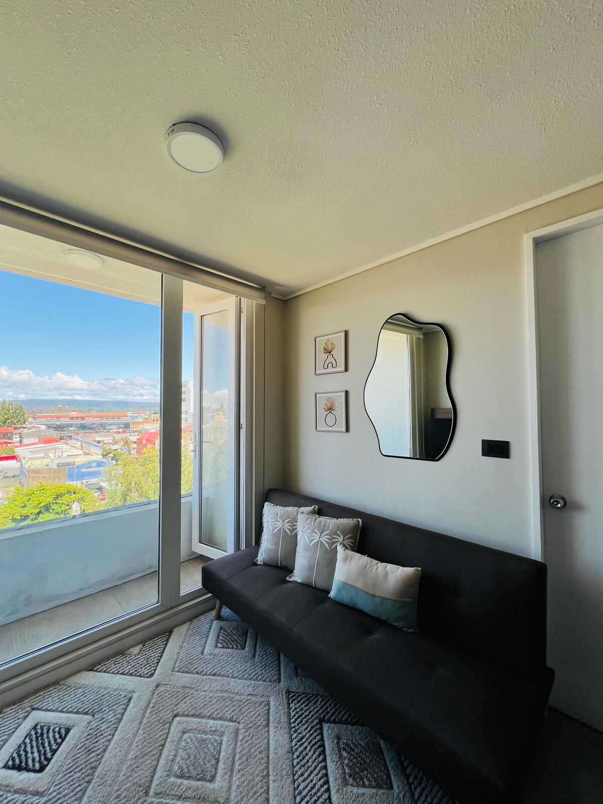 Profitez du confort et du style dans cet appartement entièrement équipé, stratégiquement situé avec accès à Av. Picarte et Costanera, à seulement quelques minutes du centre de Valdivia. - Salon-salle à manger. - Cuisine entièrement équipée : four électrique, hotte, micro-ondes, lave-vaisselle, réfrigérateur, bouilloire, grille pain, cafetière et mixeur. - Salle de bain avec thermos électrique, fer à repasser, sèche-cheveux et serviettes. - Chambre avec lit 2 places. - Terrasse. - Wifi 800mbps - Parking couvert à l'intérieur de l'immeuble.