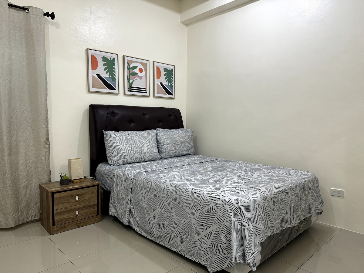 Profitez de votre séjour dans ce studio confortable et élégant à Mesavirre Garden Residences, situé au cœur de la ville de Bacolod. Le logement est équipé de ce qui suit, que vous pouvez utiliser pleinement ! - Télévision connectée 50 pouces avec Netflix et HBO GO - WiFi (illimité) à 300 Mbps - climatisation ; - réfrigérateur ; - Cuiseur à riz ; - bouilloire électrique ; - Cuisinière électrique - chauffe-eau de douche - bidet ; - ustensiles de cuisine et vaisselle - fer à repasser -sèche cheveux - pantoufles ; - Kit de bienvenue - boutique d'honnêteté - jeux de cartes et de société