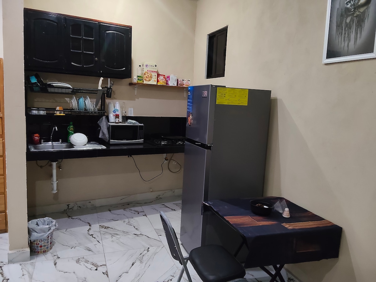 Appartement mignon, accueillant et entièrement équipé. Situé dans le quartier le plus exclusif d'Apodaca à 10 min de l'aéroport. L'appartement de type loft, avec cuisine équipée intégrale, cafetière avec service de café et thé inclus, ustensiles de cuisine de base, micro-ondes, fer et planche à repasser, lave-linge et sèche-linge, télévision principale Smart TV, Internet, service d'eau chaude, salle de bain avec douche séparée, mini-split. Accès totalement indépendant, parking extérieur.