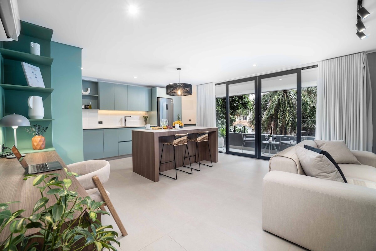 Moderne, lumineux, calme : climatisation, piscine, bureau et balcon