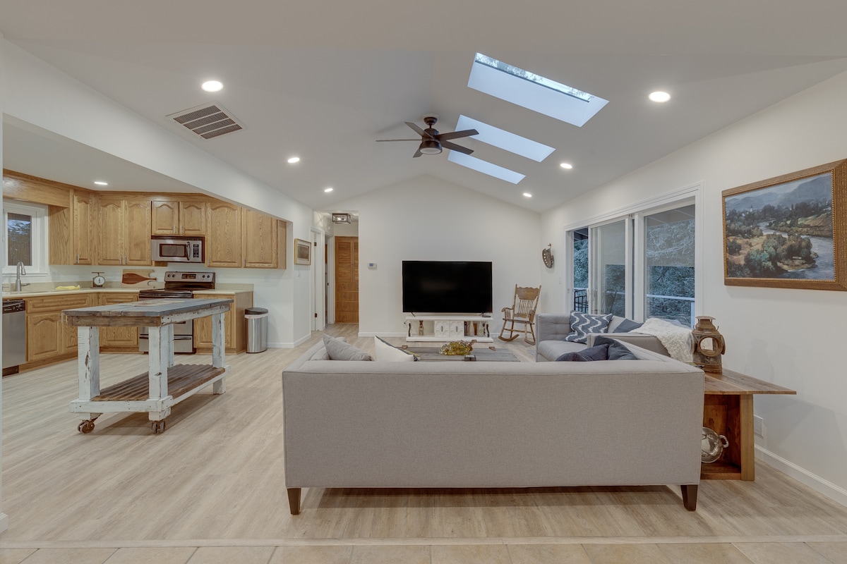 Cette maison familiale de 1800 pieds carrés récemment rénovée dispose de trois chambres, de deux salles de bain et d'une terrasse arrière qui surplombe un ruisseau pour se détendre, profiter du vin local ou du barbecue. Vous tomberez amoureux des sons émouvants du ruisseau qui coule toute l'année à travers ce bosquet miniature de séquoias. Cette escapade parfaite pour les amateurs de nourriture, de vin et de bière se trouve à moins d'un mile (0,7) du centre-ville de Murphys. Pour les aventuriers de plein air, le lac New Melones, Bear Valley et Big Trees Village sont à quelques minutes en voiture.