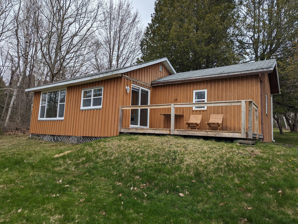 Amenez toute la famille dans ce chalet incroyable et privé sur 1,5 acres de propriété au bord de l'eau sur le populaire lac Washademoak. Détendez-vous dans le jacuzzi ou profitez du lever du soleil depuis la terrasse spacieuse. Faites du kayak ou du paddle dans les eaux calmes de la crique, nagez jusqu'au radeau ou amarrez votre bateau sur 200 pieds de front de mer. La chambre principale est située à l'étage principal avec un lit King Size. Deux autres chambres avec lits doubles sont à l'étage avec une autre salle de bain et un canapé futon double.