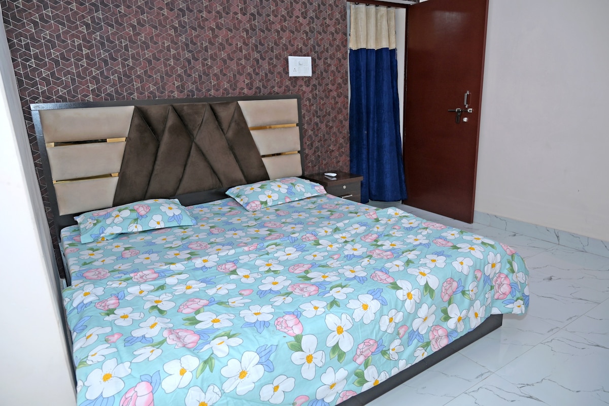 Namaste ! Bienvenue dans votre maison loin de chez vous à Varanasi ! Espace privé de luxe avec jardin sur le toit. Parfaitement situé à moins de 20 minutes des sites emblématiques de Varanasi (temple Shri Kashi Vishwanath et Ghats), cet espace offre un lit king-size, une cuisine entièrement équipée, une connexion Wi-Fi, une grande télévision Android et une terrasse spacieuse pour la détente ou le yoga. Que vous soyez ici pour explorer, méditer ou simplement vous détendre, nous espérons que vous vous sentirez comme chez vous et que vous repartirez avec un sentiment de rajeunissement.