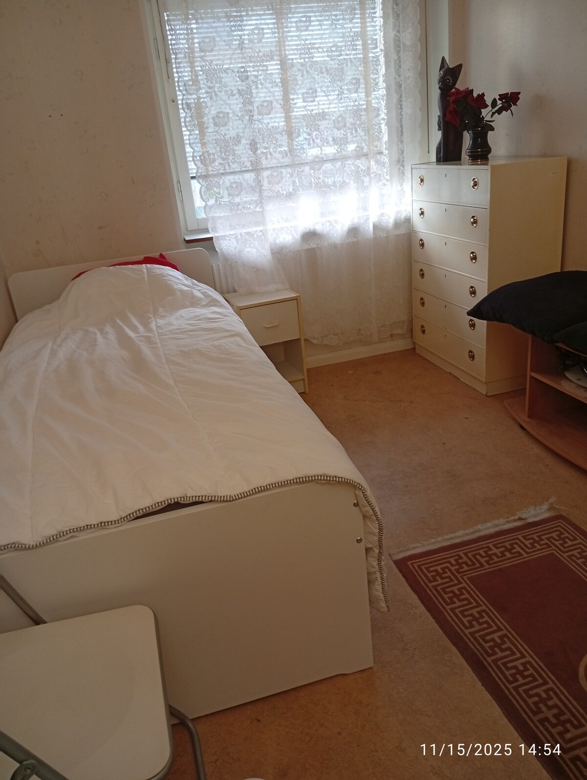 Bienvenue à la location de cet appartement nouvellement construit, qui est une extension de notre villa. L'appartement est entièrement privé avec sa propre entrée. Il y a une salle de bain avec douche et lave-linge. Cuisine et salon avec télévision, canapé et coin repas juste à côté de la fenêtre. Vous trouverez dans la chambre un lit de 180 cm, une armoire et des fenêtres avec des rideaux occultants. À environ 30 minutes de Stockholm C À proximité du bus Parking gratuit Près du lac et des sentiers pédestres Accueil chaleureux