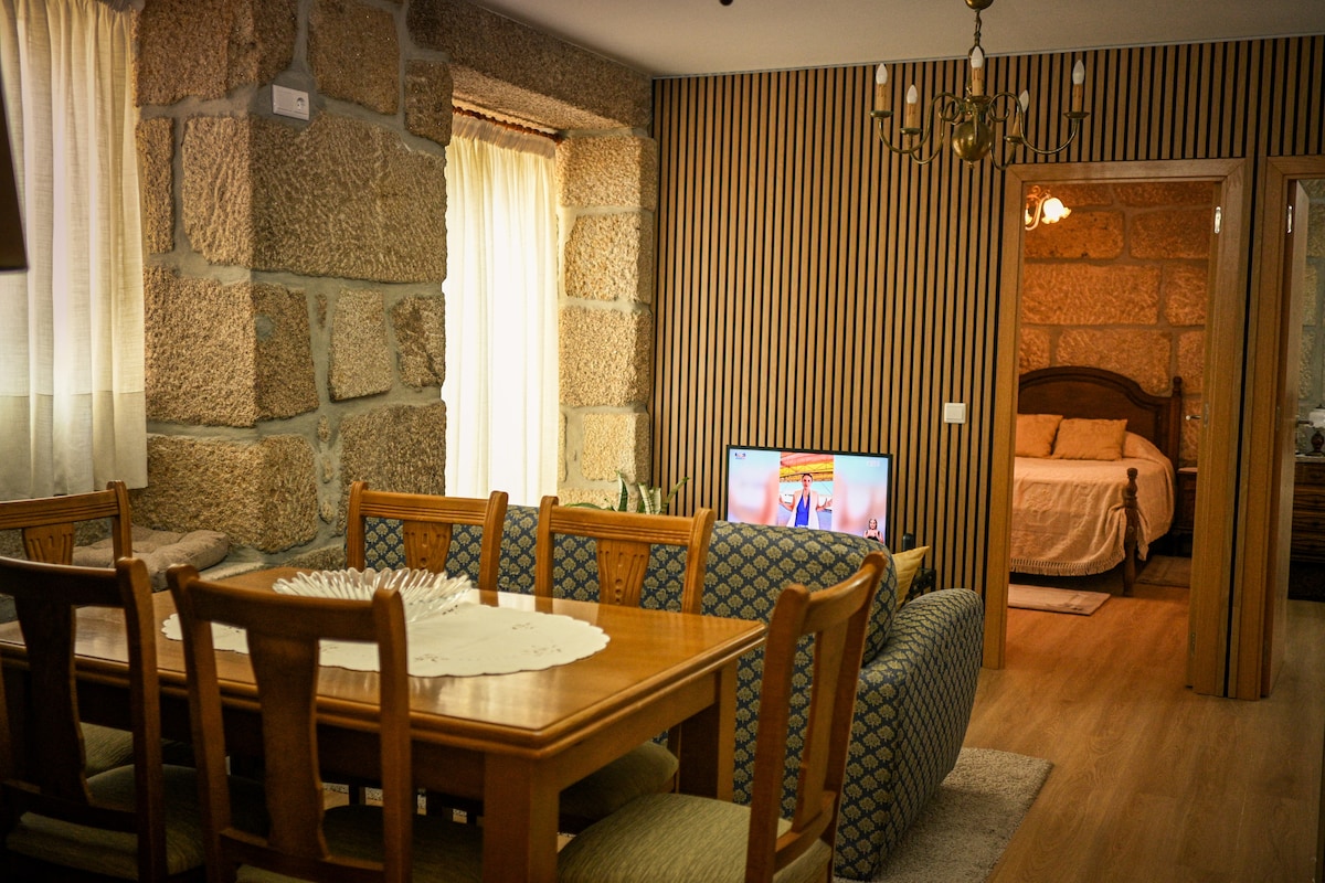 Espace accueillant et calme. Si vous appréciez la nature et aimez la tranquillité, venez à Serra do Marão. Dégustez nos délices, profitez de nos paysages, marchez le long du PR6 - Rio Marão et plongez dans les eaux cristallines du Rio Marão, du Rio Póvoa ou de la piscine du village. Le chalet a été décoré en réutilisant des matériaux de l'ancienne construction, ainsi que des objets anciens et des antiquités de famille. Venez nous rendre visite ! Vous ne le regretterez pas !