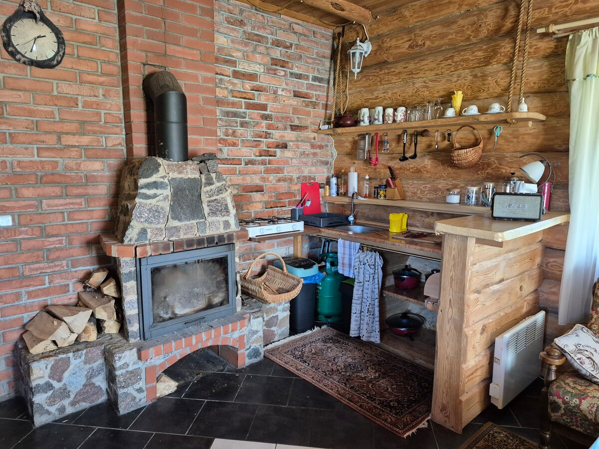 Un chalet en bois double entouré d'une forêt près du lac Dzirnavu avec une vue unique sur le jardin des cerfs. Communication électronique préférée : e-mail ou SMS. Une maison en bois pour deux personnes entourée d'une forêt près du lac Dzirnavu avec une vue unique à travers une fenêtre sur un jardin de cerfs. Communication électronique préférée : courriel ou texte.