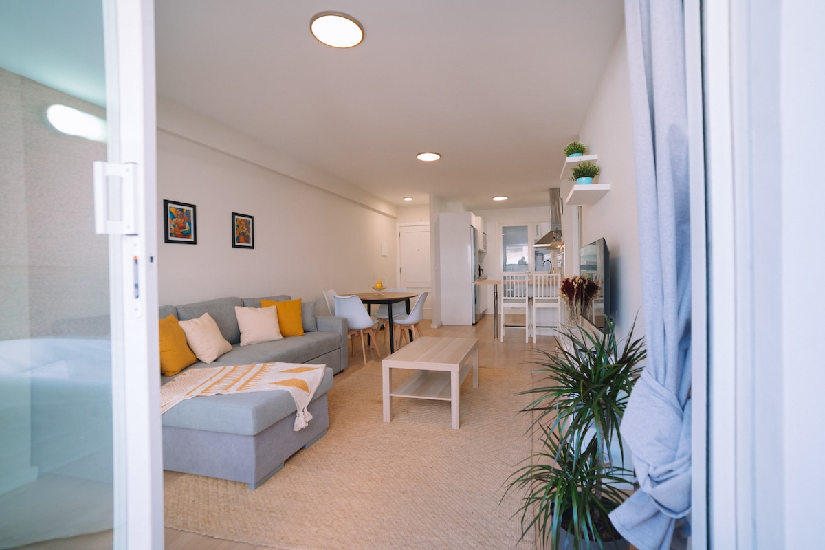 Loft rustique au rez-de-chaussée avec entrée indépendante, au cœur du vieux quartier de Bouzas à 50 mètres de la plage avec d'agréables zones de promenade (par exemple : Musée de la mer 15 min à pied). Distribution : - Espace ouvert avec cuisine, salle à manger, salon avec canapé et télévision, et lit double (160x200cm). - Chambre avec lit double 135 cm. - Grande salle de bain avec douche. Supermarchés, pharmacies, banques, boulangeries, bars et tapas à proximité. Bruyant parfois. ⛔ Il est interdit de fumer. Arrêts de bus et de taxi à 50 mètres.