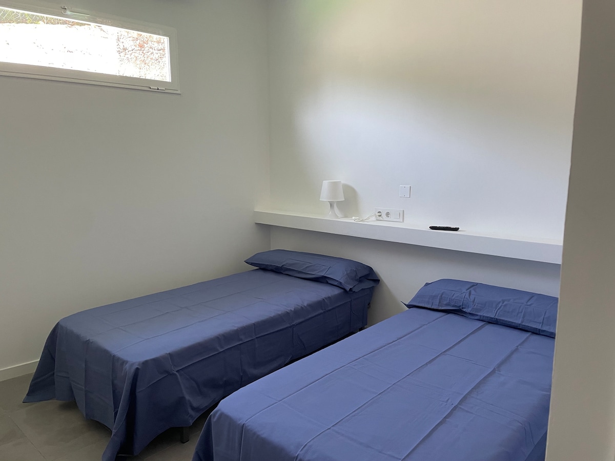 L'appartement est situé au premier étage et vient d'être rénové. Les chambres sont équipées d'un lit de 135 cm, de lits jumeaux de 105 cm et d'un lit simple de 90 cm. Salle de bain complète Cuisine entièrement équipée Grand salon-salle à manger Buanderie Le jardin arrière ensoleillé et calme est équipé d'un barbecue au feu de bois (bois et charbon inclus), d'une table avec parasol et de chaises longues L'appartement est à quelques pas du centre de O Grove dans un quartier très calme situé à 200 m de la mairie