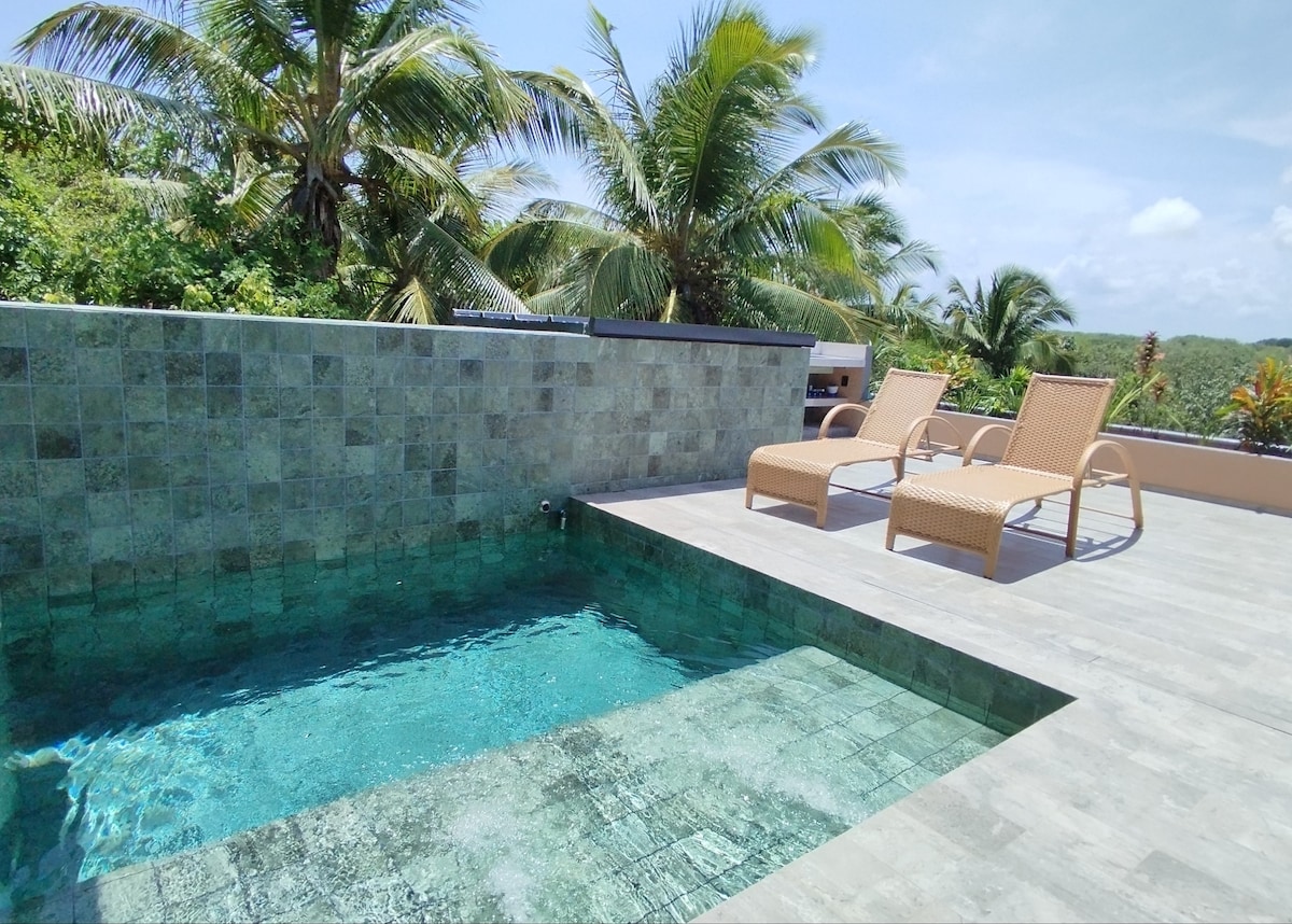 Votre escapade romantique pour deux personnes, avec une vue imprenable sur l'océan à 180°, vous attend. À seulement 1 minute à pied de trois superbes restaurants et à 7-12 minutes à pied de trois plages. Votre havre de paix romantique comprend un jacuzzi chauffé, une piscine privée, un lit king size, une cuisine entièrement équipée et une connexion Wi-Fi rapide. Envoyez-nous un message pour obtenir des offres exclusives. ★★★★★« Endroit exceptionnel avec tranquillité, intimité, vue et confort »