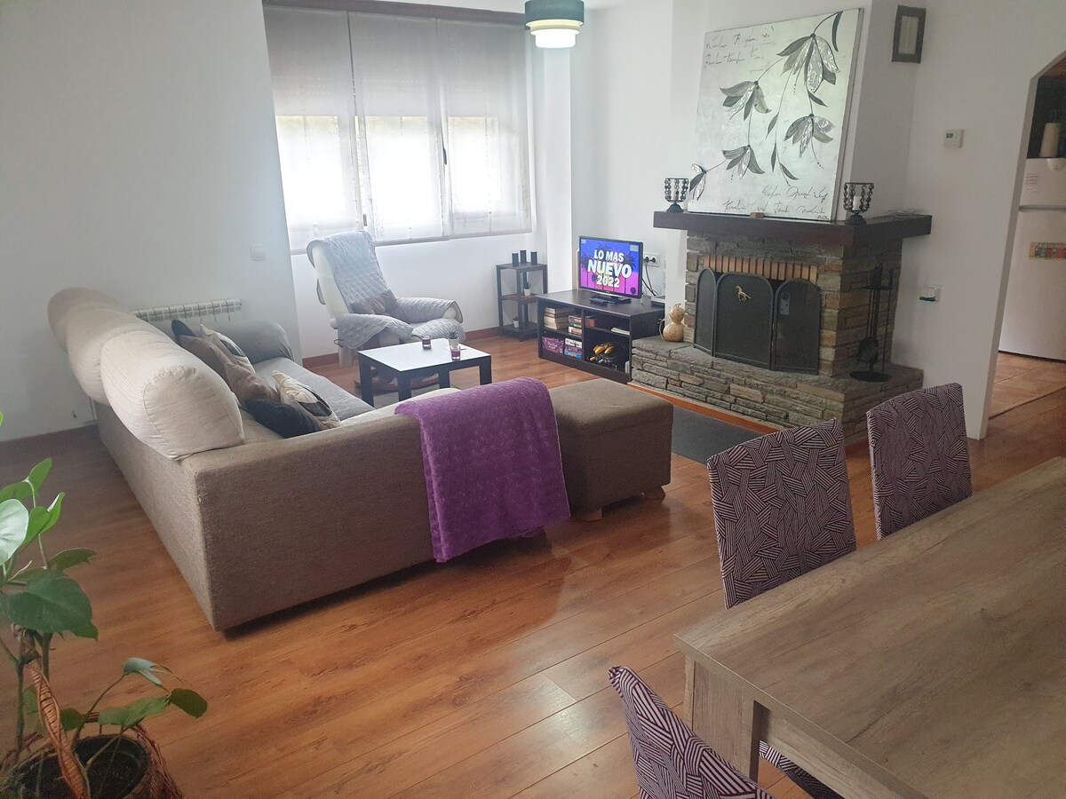 Ascensor. Plaza de parking Cocina grande independiente, totalmente equipada ( lavavajillas, lavadora etc..)con mesa que se puede desplegar. Gran comedor con chimenea sofá-cama con cheslon .Mesa madera y sillas de cuero .Todo el apartamento consta de espaciosos armarios empotrados y calefacción. Dormitorio suite con colchón viscoelástico 135 cm y baño completo. Dormitorio con cama nido de dos camas de 90 y escritorio. Dormitorio con cama de 135cmts y colchon de viscoelástica. Otro baño completo