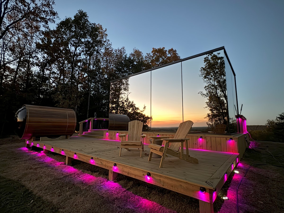 “Twisted Pines Luxury Escapes” is a Romantic treetop retreat with tranquil pond views and a glowing fountain,set on five private acres of pure privacy. Indulge in the deep soaking tub, enjoy heated towel rack, or unwind in the hot tub beneath a blanket of stars. Spend your days playing cornhole, ping pong, & paddling across the pond in a paddle boat provided , step into a full retro arcade tucked inside a classic Airstream camper.Nature,luxury, & endless fun combine for an unforgettable getaway