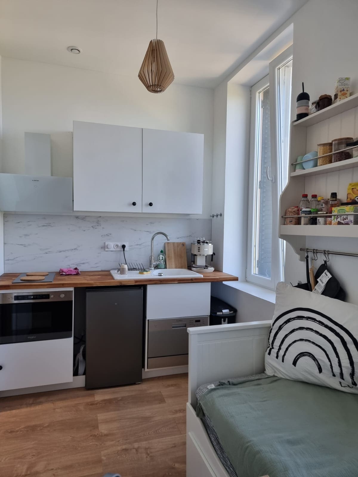 Calme et Confortable Situé près de la gare côté Cassine, et proche du centre ville. Le studio de plus de 20m² est confortable (vrai lit 140x190), il possède des sanitaires privés et une kitchenette, avec plaque de cuisson, micro-onde et base d'épicerie, thé, café,huile... La décoration est simple et vintage. Depuis la fenêtre on observe la gare et la rotonde sncf, au loin le massif de l'Epine.