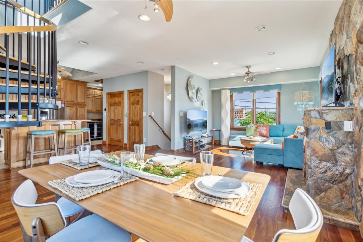 Désirez-vous la paix, le calme et la tranquillité ? Cette maison de ville est l'escapade PARFAITE ! Elle est JUSTE sur l'eau et dispose des éléments suivants : *Mobilier récent ! * Wi-Fi panoramique ultra-rapide et espace de travail dédié ; * Chambre 1 : lit King Size donnant sur l'eau. Pas une mauvaise façon de se réveiller ?! ? *Kit gastronomique avec comptoirs en granit, appareils en acier inoxydable, complet avec un four à convection, une cafetière et des crémiers * Téléviseurs intelligents avec supports muraux réglables selon vos préférences de vue, dans chaque chambre et le séjour.