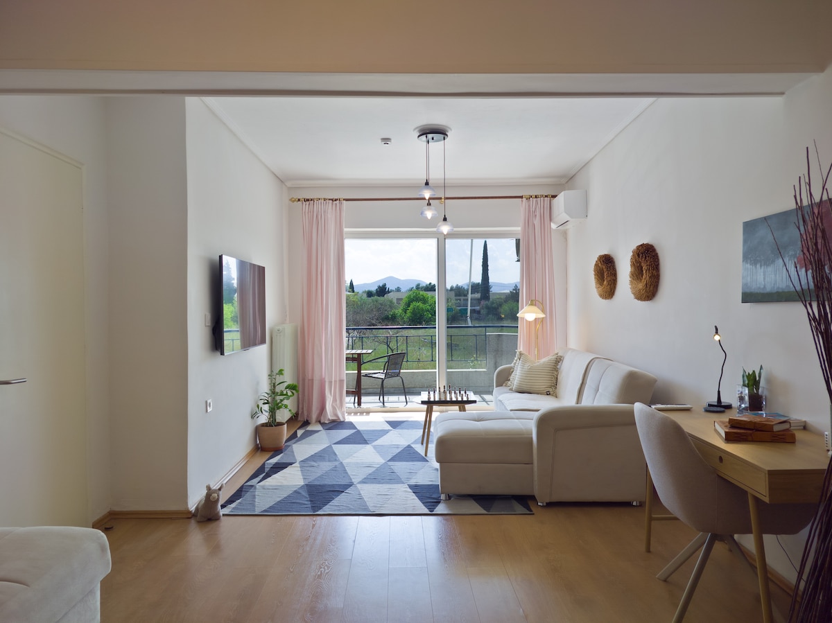 Appartement avec deux chambres et un grand salon, dans le centre de Nea Ionia Volos, salle de bain spacieuse, cuisine entièrement équipée, internet, chauffage autonome, deux climatiseurs et tout ce dont vous pourriez avoir besoin dans une maison confortable et accueillante. Très proche du centre ville, à côté du parc et du marché local, dans un quartier calme avec un parking facile.