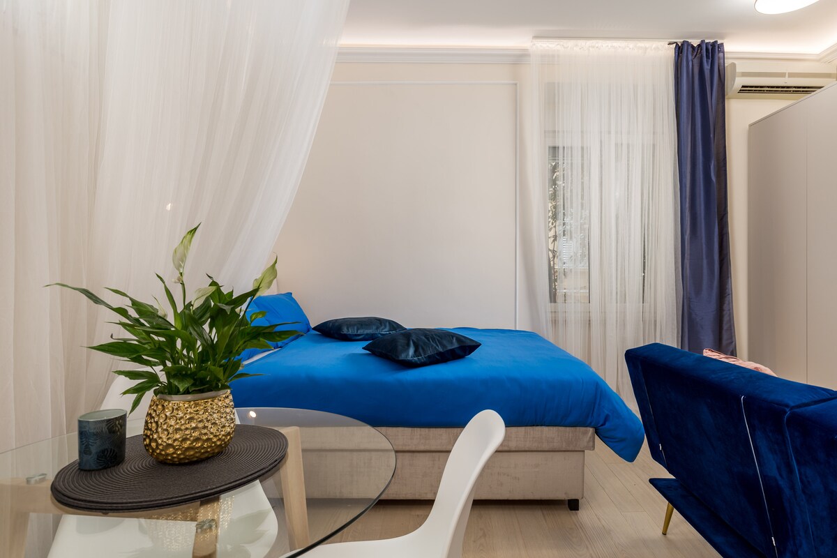 Bienvenue dans notre loft élégant sur le toit avec un grand balcon et un paysage panoramique incroyable. Réveillez-vous avec les 50 nuances de bleu de la mer Adriatique. Une image si parfaitement conçue qu'elle guérit votre âme. Observez les véliplanchistes dans la baie tôt le matin et profitez d'un brunch relaxant dans le calme et la tranquillité. Admirez la beauté des tempêtes de loin, découvrez des plages secrètes à proximité et observez de superbes couchers de soleil depuis notre confortable salon sur le balcon. Respirez, ralentissez et créez des souvenirs inoubliables.