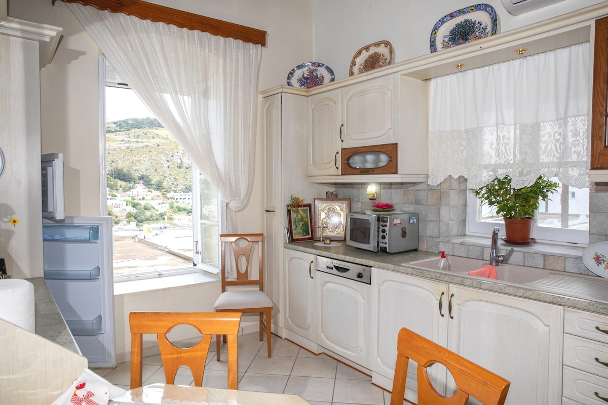 Réveillez-vous avec une vue bleue infinie sur la mer Égée dans un appartement traditionnel en pierre dans le pittoresque village de pêcheurs de Panteli, Leros. Profitez de la sérénité de l'île depuis une chambre de 35 m² avec un lit double de 160×200 cm, une salle de bain de 10 m² et une cuisine extérieure avec vue panoramique sur la mer et le village. À seulement 5 minutes des tavernes et des magasins, et à seulement 500 m de la plage. Une retraite insulaire authentique avec des vues de carte postale.