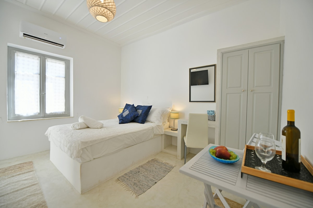 Le studio fait partie d'une plus grande maison traditionnelle en pierre, entièrement rénovée et avec une vue imprenable sur le port. On atteint les maisons en 10-15 minutes à pied (et des escaliers) du port en fonction du rythme de chaque personne. Hydra est une amphithéâtre construite et il y a beaucoup d'escaliers en pierre de taille autour de la ville et menant à la maison, donc ...pas pour tout le monde ! de nouveaux frais gouvernementaux obligatoires ont été introduits : les « Frais de résilience aux crises climatiques », d'un montant de 8 € par nuit pour les hébergements de courte durée