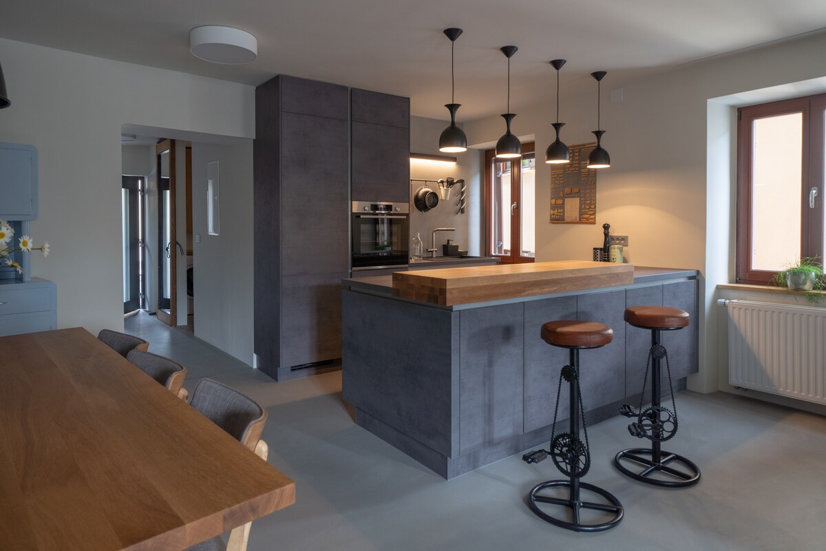 Profitez d'un logement élégant et central. Au cœur de la ville historique de Kobarid. Offrant un hébergement magnifique et confortable dans une chambre double avec lit King Size et salle de bain attenante, chauffage par le sol et Wi-Fi gratuit. Situé à proximité des restaurants, des commerces et du musée de Kobarid, et à quelques pas de la rivière Soca. Grande promenade dans la vallée de la Soca, VTT et possibilités de baignade. Nous nous ferons un plaisir d'organiser un taxi si nécessaire (à 5 km de Hisa Franko).