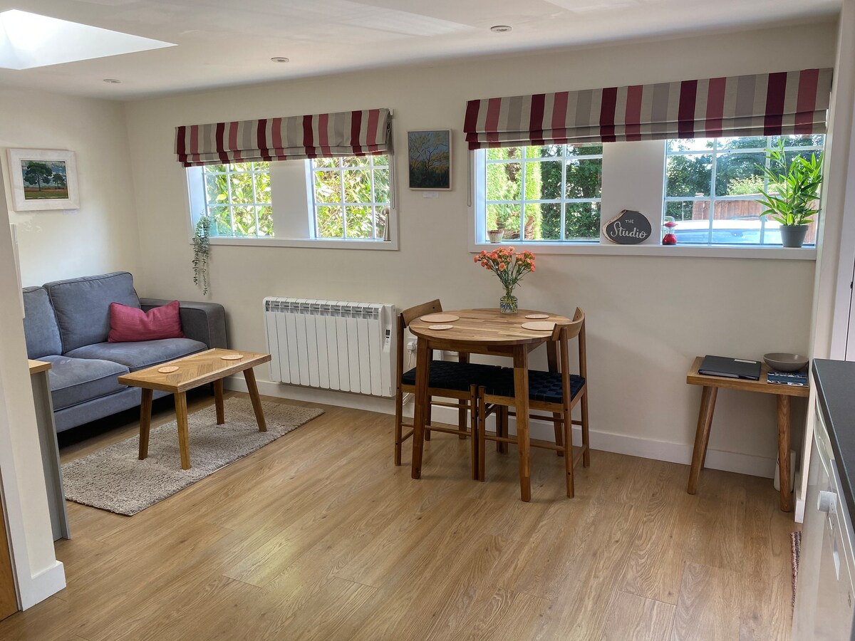 Un studio confortable et indépendant avec un accès facile à la New Forest et à la mer, à quelques pas du cœur de Lymington, avec ses marinas, sa clé pavée historique et ses restaurants. Ce studio de garage converti par des professionnels dispose d'un chauffage au sol, d'un canapé convertible double confortable avec tout le linge, d'une télévision et d'une connexion Wi-Fi, ainsi que d'une salle d'eau compacte. La kitchenette est équipée d'un réfrigérateur-congélateur, d'un four à micro-ondes, d'une plaque de cuisson, d'une bouilloire, d'un grille-pain et de tous les éléments essentiels. Idéalement situé pour les transports locaux, à seulement 5 minutes en voiture de Keyhaven/Milford.