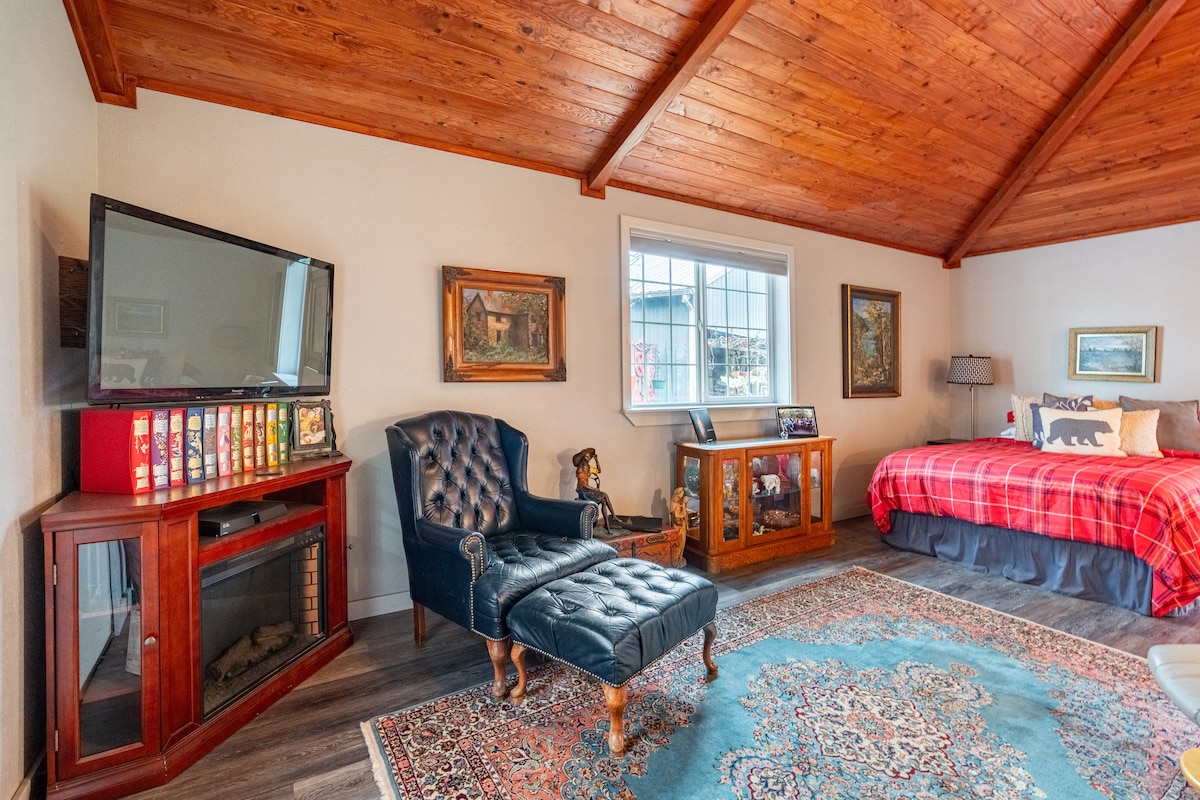 Profitez d'un studio privé et élégant dans le centre-ville de Springfield, situé à 5 minutes en voiture de l'UO et de Hayward Field et à 10 minutes du centre-ville d'Eugene. Ce studio dispose d'un lit Queen Size, d'une kitchenette entièrement approvisionnée, d'un grand réfrigérateur/congélateur, d'une télévision Fire et d'une cour privée et pittoresque avec des chaises longues. Vous pouvez marcher 7 pâtés de maisons jusqu'à notre charmant centre-ville ou emprunter la piste cyclable qui vous relie rapidement aux magnifiques sentiers fluviaux d'Eugene. Dorris Ranch et Mount Pisgah sont des trésors naturels à proximité.