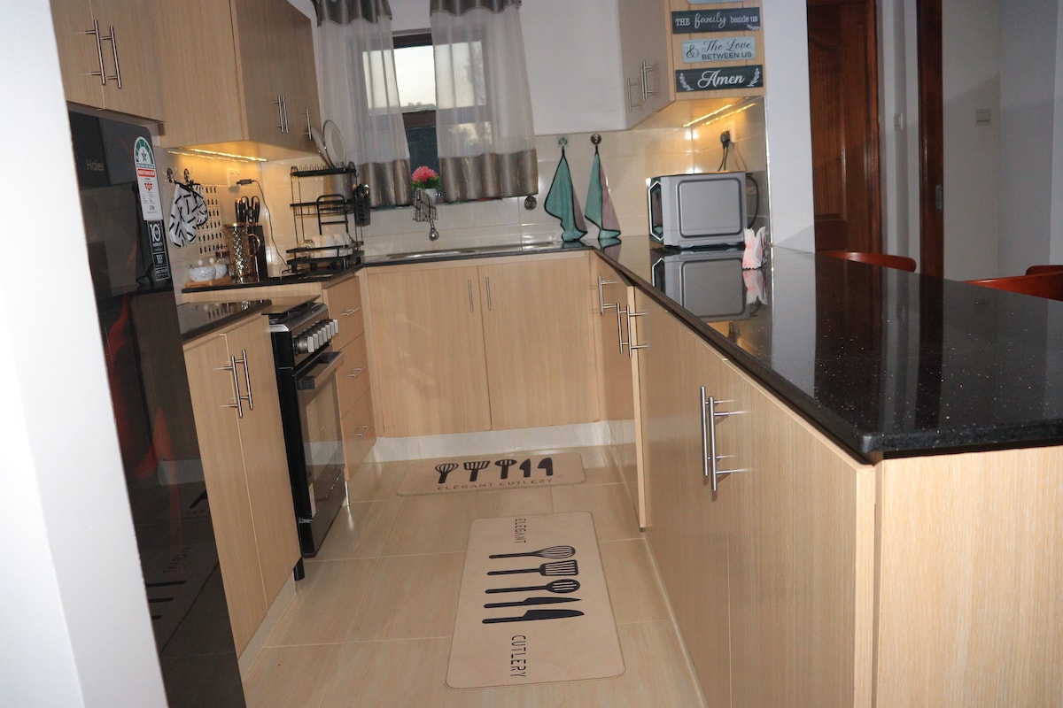 Offrez-vous le luxe urbain dans notre studio situé au centre, avec un somptueux lit king-size. Situé dans le quartier calme et sûr de Lavington, à seulement 8 minutes à pied du centre commercial animé de Junction Mall, notre bâtiment offre une gamme d'équipements, y compris une piscine rafraîchissante, une salle de sport entièrement équipée, un charmant foyer et un espace barbecue, le tout dans une cour magnifiquement aménagée. De plus, profitez du divertissement sur notre impressionnante télévision 70" avec un abonnement Netflix gratuit.