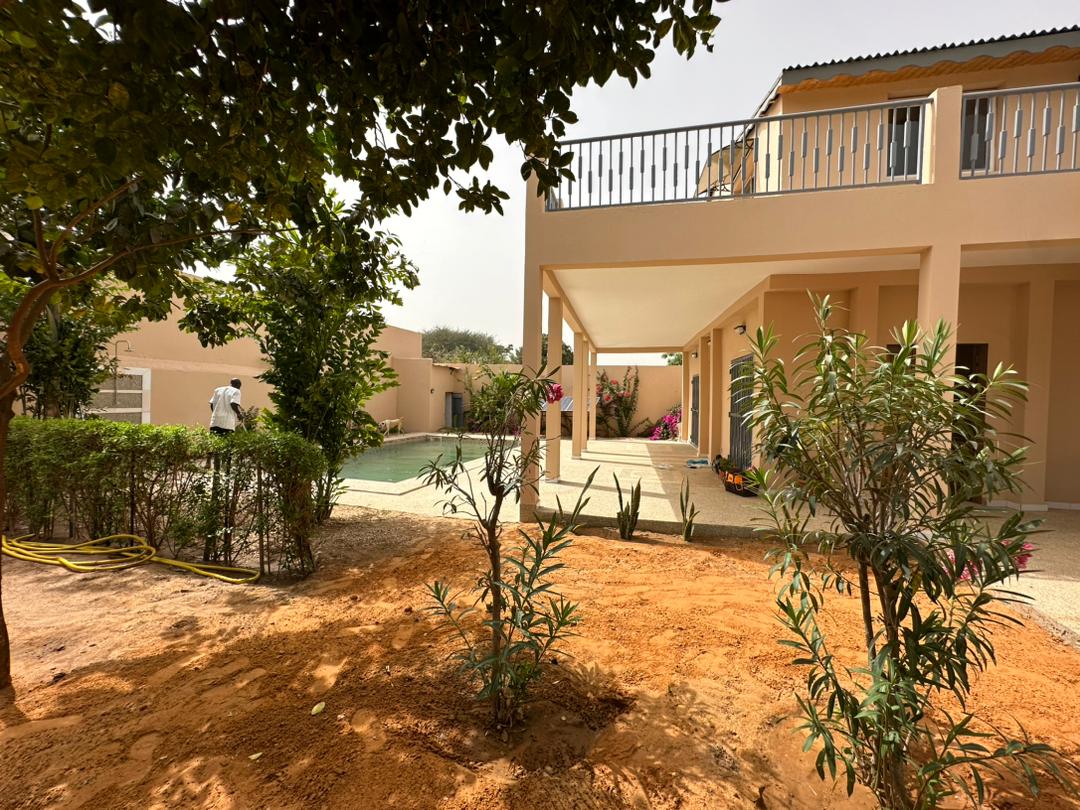 Profitez en famille de ce fabuleux logement qui offre de bons moments en perspective. Villa au toit de chaume , entourée d'un joli jardin à 1km du petit village de pécheurs de Nianing sur la petite côte à l'intérieur d'une résidence gardée 24h sur 24 avec sa piscine privée, située à 400 m de la plage . - Internet / WIFI a la charge du client -1 espace télévisions - Une piscine privé + une piscine collective - Plage à 400 mètres - Supérette d'appoint à l'entrée de la résidence.