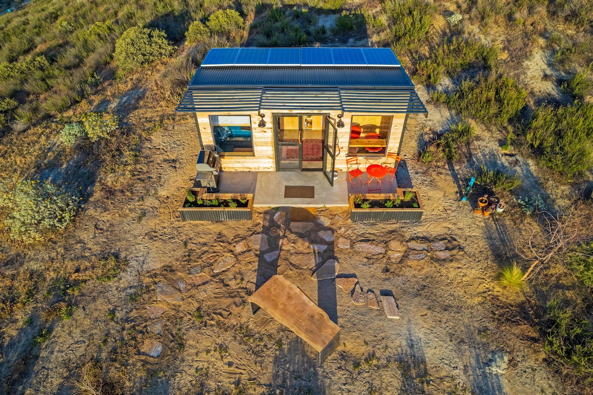 The Overlook est perché au-dessus d'une vallée intacte qui s'étend vers des collines texturées et l'horizon au-delà. C'est là que votre tiny house vous attend. Ouvrez les doubles portes et trouvez tout ce dont vous avez besoin. Un lit en porte-à-faux au-dessus du canapé, un comptoir de cuisine de 10', une salle de bain avec douche à effet pluie entièrement carrelée et des toilettes sèches, un coin repas/travail et un barbecue/coin salon extérieur. Évadez-vous. Reconnectez. Cuisinez. Lisez. Écrivez. Détendez-vous. Pensez. Venez découvrir une façon légèrement différente de faire les choses. Bienvenue à The Overlook.