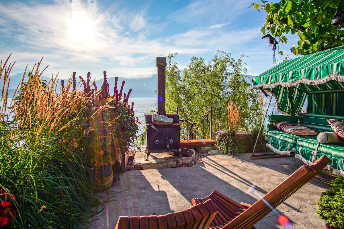 Cabane astucieusement conçue au bord d'un petit étang dans la forêt. Réveillez-vous avec la douce lumière de la forêt et le chant des oiseaux. Le porche fermé dispose d'immenses fenêtres qui peuvent être entièrement ouvertes pour une sensation d'extérieur. La propriété est en bord de lac et les voyageurs ont accès à un petit lac non motorisé où ils peuvent pagayer, flotter et nager. La propriété se trouve à 20 minutes de Sun Peaks, entourée de sentiers de randonnée, de lacs, de terrains de golf et de nombreuses activités de plein air.