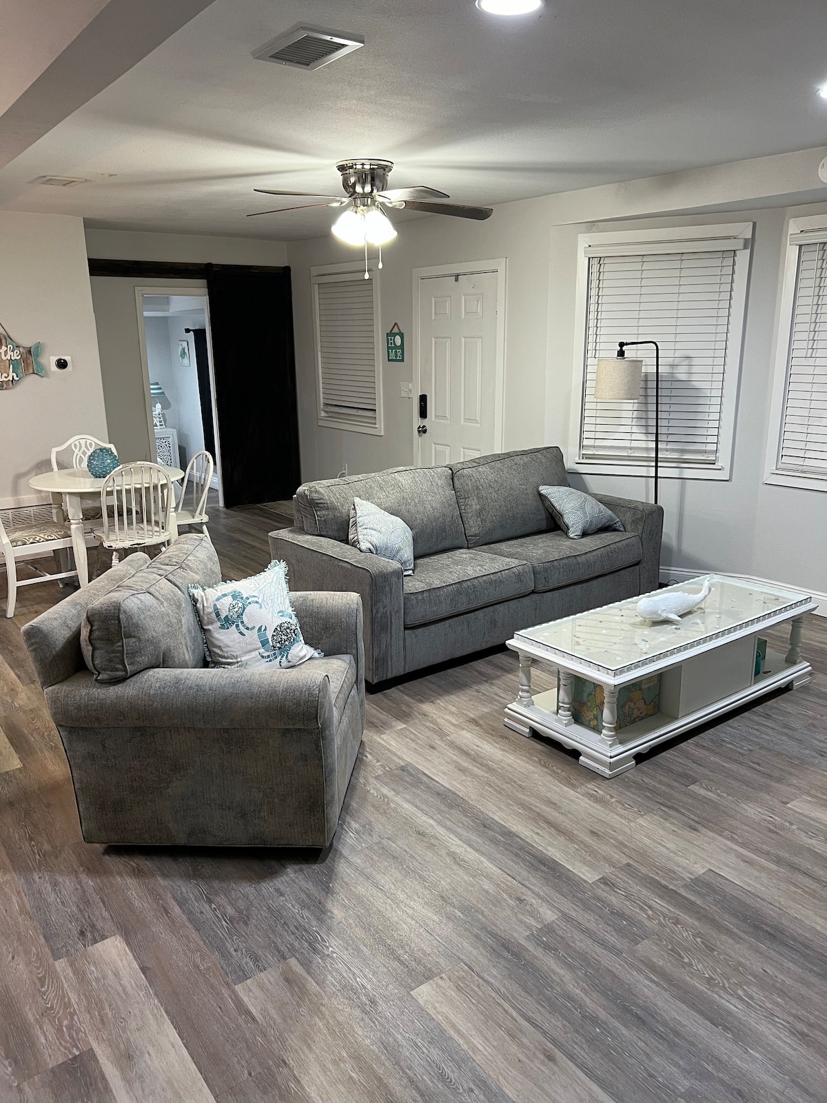 Escapade romantique parfaite avec lit King Size, grand jacuzzi et douche à double tête. Situé à quelques minutes de l'aéroport, du centre-ville et de la plage ! À distance de marche de certains des restaurants les plus uniques de Pensacola. Entrée privée avec accès sans clé. Nous fournirons tout ce dont vous avez besoin pour une journée à la plage : chaises, parasol, serviettes de plage et glacière. Télévision grand écran et Internet haut débit. La suite n'a PAS de cuisine. Interdiction de FUMER !