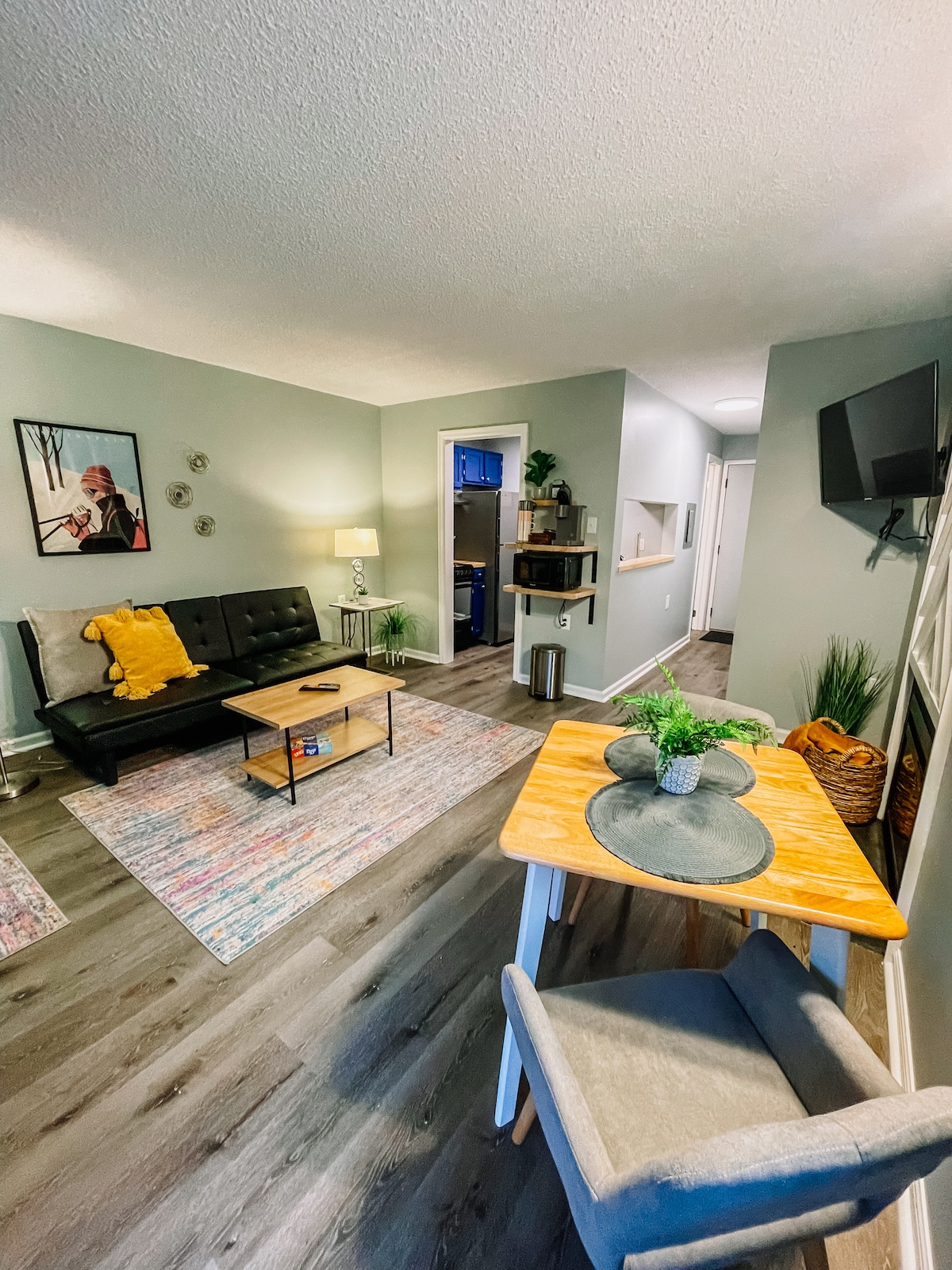 - Quartier résidentiel calme ; - Appartement de sous-sol récemment rénové avec accès de plain-pied. - Pas d'escaliers à monter - Lave-linge et sèche-linge facilement disponibles ; - Idéal pour un week-end ou un séjour prolongé de 30 jours et plus ; - Arrivée autonome facile avec serrure intelligente ; - Cuisine ouverte, salle à manger et salon - Matelas et oreillers neufs avec housses de protection - Le coin bar à café comprend une machine à café Keurig. Proche de Penn State et Beaver Stadium (15 minutes en voiture), Mt. Nittany, de la station de ski de Tussey et du parc des expositions Grange Fair.