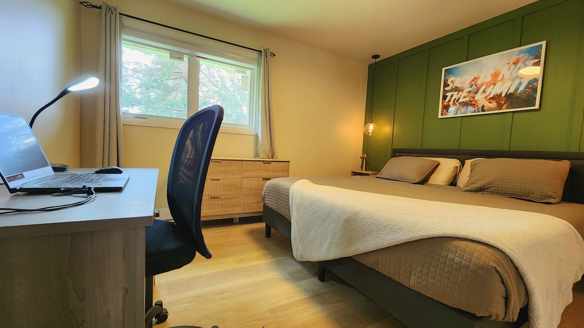 BeachHouse a été conçu pour accueillir toute la famille dans un grand appartement 4 et demi au goût du jour, tout près de la montagne Mont Arthabaska - 2 Lit King - 1 Divan-lit - Cuisine complète (électros et ustensiles) - Lave-Vaisselle - Laveuse et sécheuse - Tv 65'' 🖥 Accès à DISNEY+ inclus - Wifi rapide Terrasse au niveau du gazon avec soleil tout l'après-midi -Stationnement 2 places indépendant - Entrée indépendante