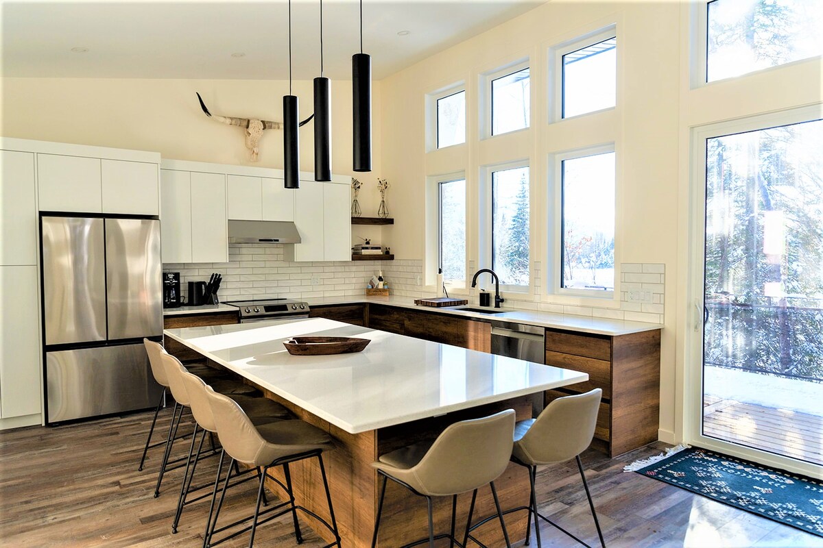 🏡 Profitez du confort de Cranbrook, en Colombie-Britannique, dans notre suite au rez-de-chaussée avec cuisine entièrement équipée qui s'ouvre sur un salon confortable avec une cheminée à gaz et une télévision de 55" avec services de streaming. 🤗 Cette suite peut accueillir jusqu'à 6 personnes avec un lit escamotable queen dans le salon et deux chambres avec un nouveau lit queen de 10" en mousse à mémoire de forme et une télévision de 32". Les équipements 😎 supplémentaires comprennent une buanderie dans la suite avec détergent fourni, une salle de bain approvisionnée avec des articles de toilette de voyage et une cour privée clôturée pour un chien et un parking sur place pour deux voitures. 🚙 🚗