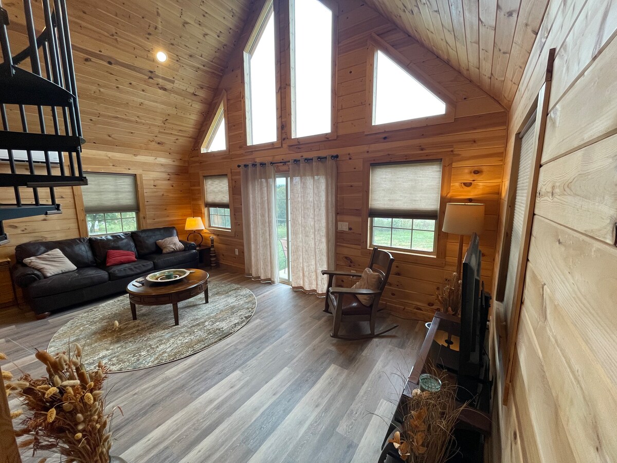 Guest love the peace and the views here at our retreat. Enjoy a morning or evening in the hot tub, sun on the pool deck and swim in warm weather. Relax by the fireplace or fire pit (roast some s’mores). Walk the property to see the chickens, horse, donkey and goats. At our farm we love diversity, support all love, and don’t think that hate makes America great - if you don’t agree we may not be the destination for you. We have added a small chair that converts to a bed- we can squeeze 3 in.
