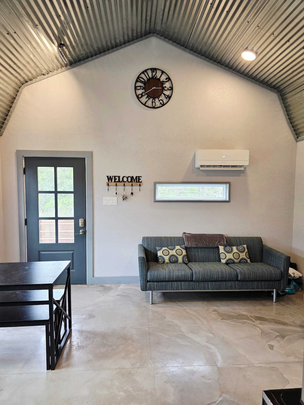 Retraite rustique dans un cadre champêtre. Récemment rénovée et conçue avec un thème moderne du sud-ouest, cette cabane de 550 pieds carrés dispose d'un lit queen size, d'une chaise longue, d'une kitchenette meublée, d'un petit coin repas et d'un porche couvert extérieur pour déguster votre café du matin ou votre verre de vin de l'après-midi. À quelques minutes de Brenham et de Round Top, cette escapade est parfaite pour les couples ou les amis qui veulent se détendre et profiter d'un espace au bord des bois.