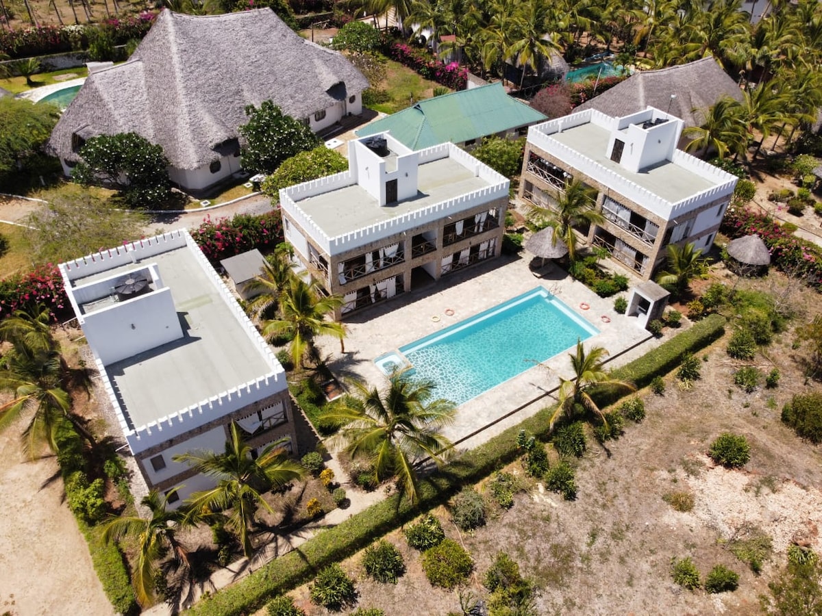 Luxe, beaucoup d'espace et d'intimité, aéré, joliment conçu, appartement en bord de mer, juste à côté de la piscine et de la merveilleuse plage de Blue Bay. Il est à distance de marche de divers restaurants, boutiques, bars, distributeurs automatiques de billets et transports. Sécurité H24. Parking privé, bon WIFI. Endroit génial et paisible pour séjourner, entouré du jardin luxuriant, idéal pour se détendre et passer des moments de qualité ensemble, emplacement idéal pour explorer Watamu. Équipé avec tout ce dont vous avez besoin. idéal pour la famille, les amis