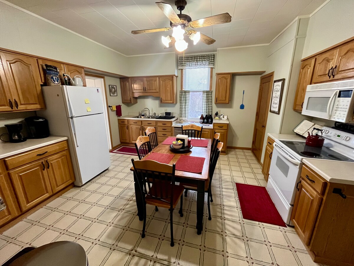 Profitez d'un séjour élégant dans cet Airbnb central et alimenté par énergie solaire. Toutes les commodités d'un logement dans un cadre rustique. Véritable mur en bois de grange et plafond en étain. Foyer électrique, télévision intelligente de 65", laveuse/sécheuse, lave-vaisselle, cuisinière, réfrigérateur, climatisation et plus encore. Dormez sur le matelas taille Queen Nectar confortable. Le canapé est un canapé-lit avec un lit pleine grandeur pour un espace de couchage supplémentaire. Bars, restaurants, épiceries et stations-service à proximité. À quelques minutes de Dubuque, du champ de rêves et de la station de ski Sundown Mountain.