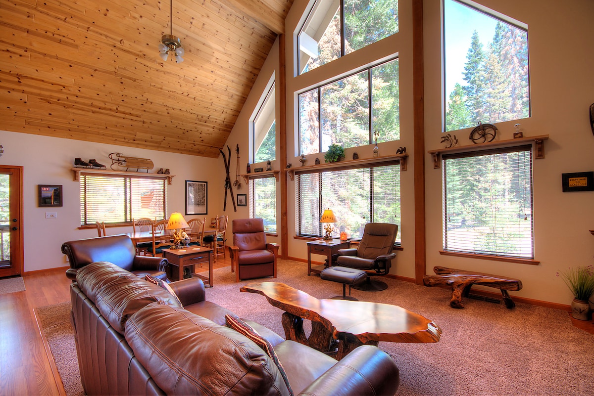 Votre aventure vous attend. À votre arrivée, détendez-vous dans votre magnifique chalet de luxe. Votre camp de base idéal à Yosemite, avec un accès facile à la randonnée, à la pêche et à toutes les aventures en plein air que vous pouvez imaginer. Sirotez votre café ou votre thé du matin sur le patio tout en admirant la vue imprenable. Asseyez-vous près du feu douillet en regardant les chutes de neige hivernales. Préparez votre plat préféré dans la cuisine de chef entièrement équipée. Les enfants peuvent profiter d'un film dans la salle de cinéma pendant que vous dégustez un verre de vin et admirez les étoiles. Envoyez un message pour les offres spéciales ou RÉSERVEZ MAINTENANT