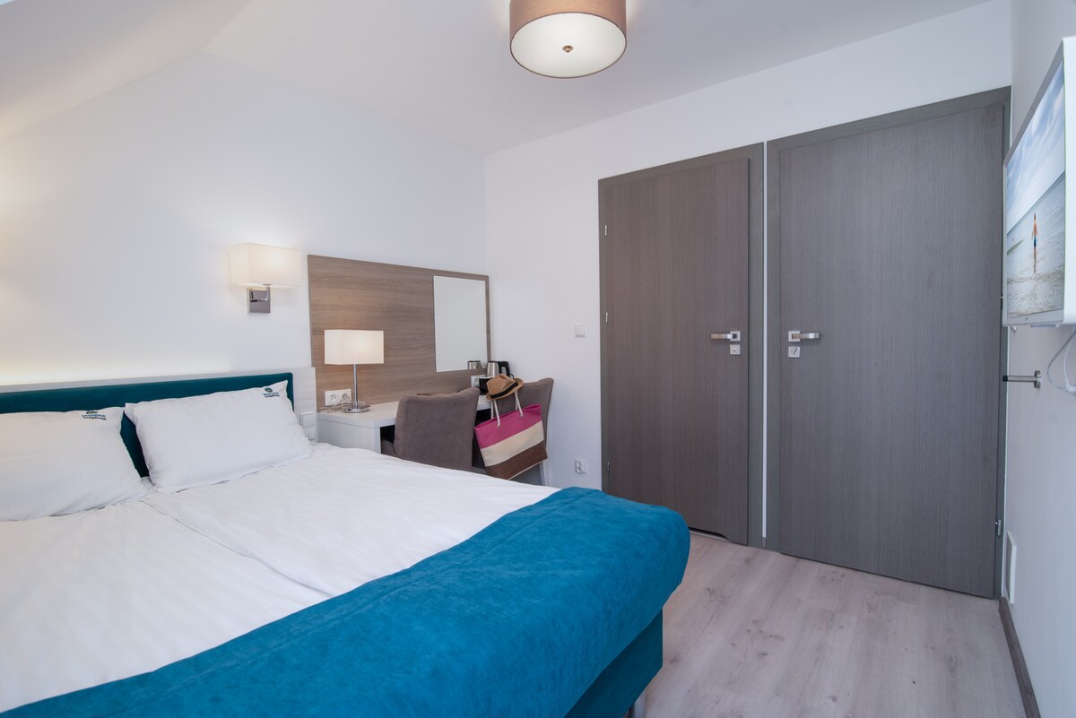 Doskonale wyposażony ośrodek, położony w cichej i spokojnej dzielnicy Władysławowa - BŁĘKITNE WZGORZE – Twoje ustronne miejsce do odpoczynku położone zaledwie 800 metrów od przepięknej plaży. Błękitne Wzgórze jest miejscem idealnym dla par oraz par z małymi dziećmi. Do Twojej dyspozycji oddajemy 56 wygodnych pokoi 2-osobowych, wyposażonych w wygodne łoża małżeńskie oraz łazienki z prysznicami, płaskie telewizory, biurka, szafy i lampki.