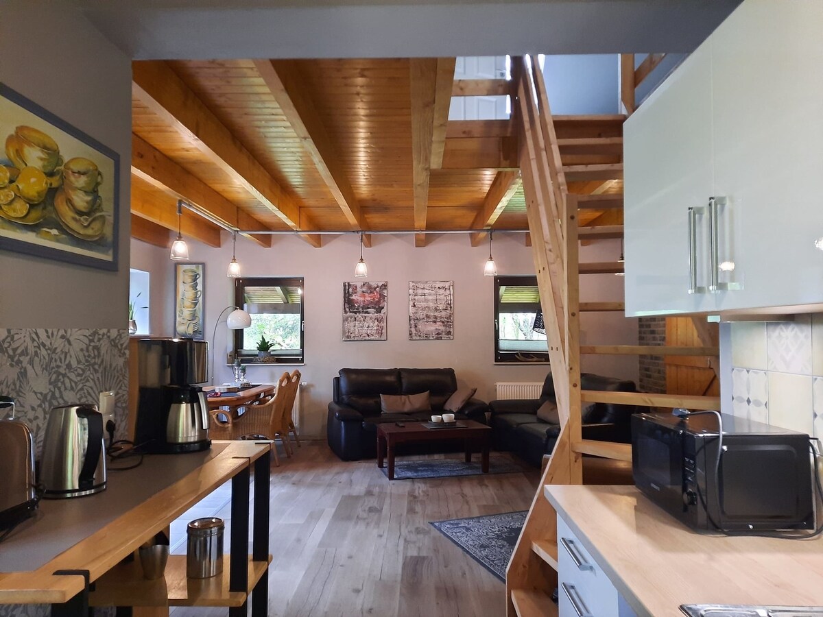 La maison à colombages pittoresque se trouve au milieu de la forêt. En 2020, le cottage a été entièrement rénové : moderne, de haute qualité et inondé de lumière. Le nouveau sauna baril et le hottub dans le jardin (gg. Supplément). Grâce aux grandes fenêtres à l'étage, on regarde le parcours de golf voisin - ou on profite de la nature intacte. La propriété peu visible offre les meilleures conditions pour des moments de détente avec jusqu'à 8 personnes. [Les enfants de moins de 10 ans séjournent gratuitement/en cas de réservation avec accompagnateur.]