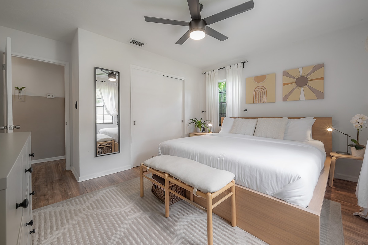 Bungalow Oasis | Palm Yard, King Bed Near Downtown